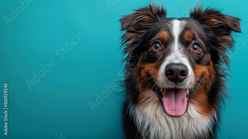 Cute joyful Border Collie. Australian shepherd. Isolated against a vibrant blue background. Pet. Dog. Canine.