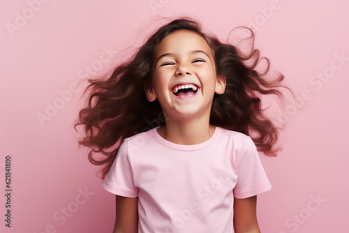 laugh, girl, portrait, face, children, curly, happiness, childhood, children, teenage, emotional, teenage, lifestyle, smile, pretty, expression, 1, people, excited, positive, posing, studio, youth, beautiful, hair, joy, cheerful, person, funny, fun, young, happy, children, isolated, cute, little, template, banner, pink, lay, flat, copy space, copy space, background, ai, generative