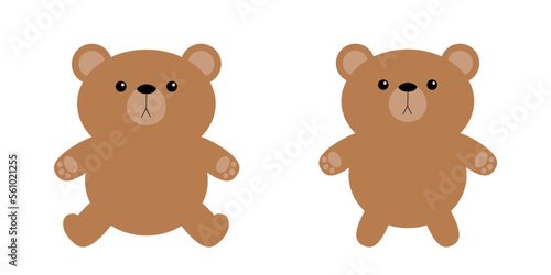 Cute little bear toy set standing sitting on the ground. Brown grizzly icon. Kawaii cartoon character. Funny head face. Happy Valentines Day. Baby greeting card. White background. Flat design.