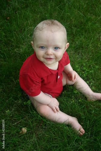 cute little boy sitting outside