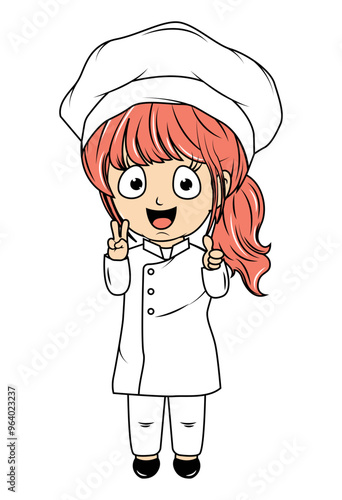 professional, element, dress, occupation, sticker, job, uniform, young, chef, eatery, happy, hat, character, profession, children, children, girl, cartoon, cooking, woman