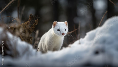Cute mammal in snow, looking at camera, small and fluffy generated by AI
