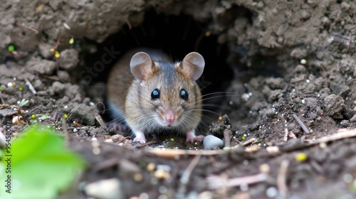 Cute mouse hiding in a hole