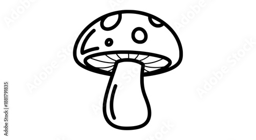 Cute Mushroom Outline Line Art Illustration