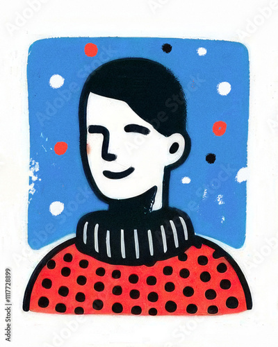 Cute person portrait with noises, scuffs, soiled paint. Kid crayon, charcoal drawing portrait of a man. Scribble, messy, children's hand drawing illustration, vintage style poster