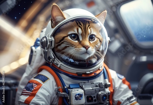 Cute space cat dressed in astronaut suit
