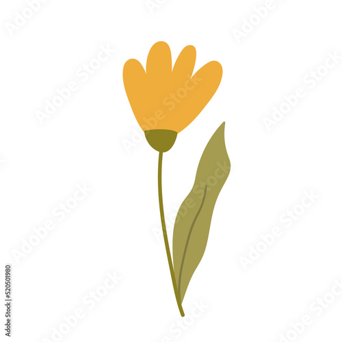 Cute yellow flower isolated on white background. Vector illustration in hand-drawn flat style. Perfect for cards, logo, decorations, spring and summer designs. Botanical clipart.
