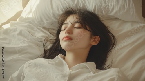 Cute young woman sleeping on bed