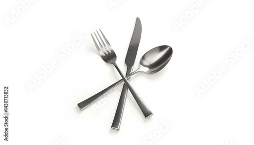 Cutlery set with Fork, Knife and Spoon isolated on white background