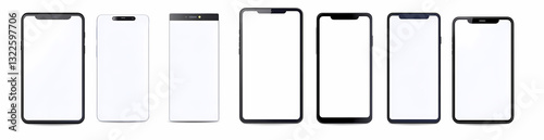 Cutting-edge technology: An array of sleek, modern smartphones with expansive screens showcase a minimalist design. The phones offer a glimpse into the future of communication.