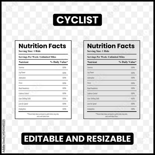 Cyclist Nutrition Facts Cycling Humor Label Bike Rider Poster Bicycle Nutrition Label Cycling Motivation Design Road Biker Label Art Mountain Biker Facts Fitness Cyclist SVG Spin Class Poster