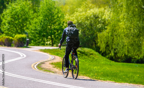 Cyclist ride on the bike path in the city Park
