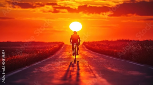 bicyclist, road, sunset, outdoors, adventure, fitness, sport, biking, lifestyle, silhouette, healthy, twilight, cycling, travel, exercise, athletic, journey, scenic, healthy lifestyle, nature, orange sky, glowing sunset, motion, cardio, wellness, physical exercise, endurance
