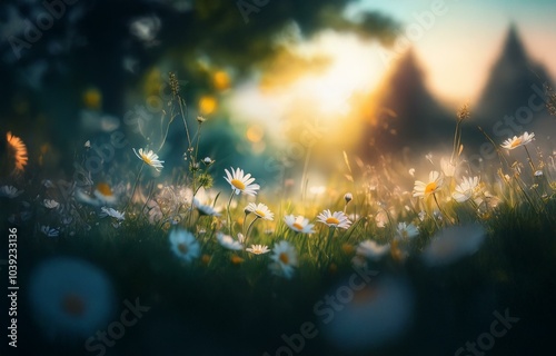 art, background, beautiful, bloom, blossom, blurry, botany, bright, closeup, daisy, delicate, field, flora, flower, gentle, glow, grass, green, growth, image, landscape, light, macro, meadow, natural, nature, organic, peaceful, photo, plant, scenic, serene, soft, summer, sun, sunset, vibrant, warm, white, wildflower, yellow