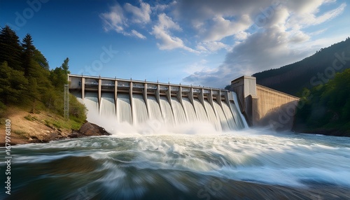 dam s water unleashed a scenic image of a dam showcasing the dynamic power of water cascading over its structure creating a mesmerizing display