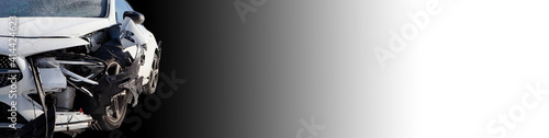 collision, crash, wreck, accident, broken, car, insurance, dangerous, auto, automobile, damage, repair, transportation, vehicle, injury, emergency, safety, metal, bumper, motor, safe, tire, drive, isolated, white, road, traffic, dent, front, smash, speed, deformation, street, hit, loss, mashed, crumple, incident, wheel, banner, drunk, horizontal, rescue, scrap, mechanic, problem, copy space, copy space, text