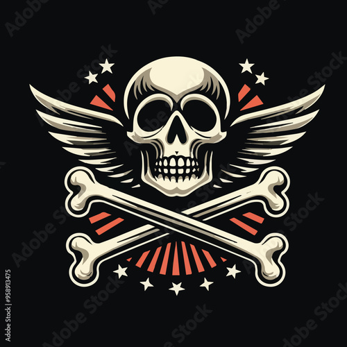 Danger warrior skull vector illustration graphic with decorative colourful pattern with sword and crossbones t-shirt Dark Art Skull Head with Bone Black and White Illustration Skull and crossbones hap