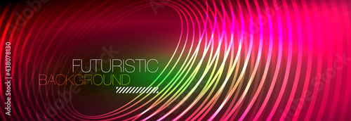 Dark abstract background with glowing neon circles. Trendy layout template for business or technology presentation, internet poster or web brochure cover, wallpaper