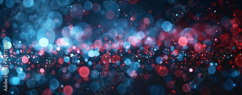 Dark and glow particle abstract background blue and red glitter