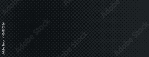 Dark black background with halftone dotted texture. Black background, halftone gradient effect with varying dot sizes. Minimal halftone black abstract vector background wallpaper