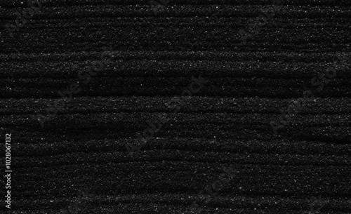 Dark black sand. Stripes and ripples of smooth volcanic sand texture or wallpaper. Wave pattern in black sand background.