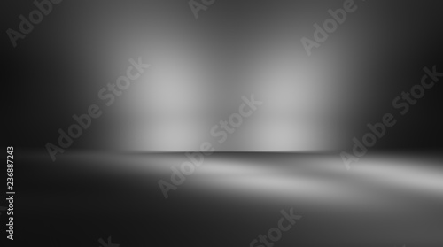 Dark black studio room with spotlight backdrop wallpaper, blank perspective for show or display your product montage or artwork.