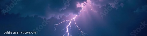 Dark clouds, jagged lightning illuminates rain, night, powerful, natural phenomenon