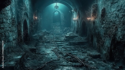 fantasy, dark, alley, urban, decay, mystery, architecture, path, mood, dramatic, gothic, teal, grey, illustration, background, creative, digital illustration