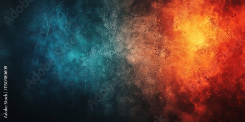Dark grainy gradient background green orange abstract glowing colors on black backdrop noise texture banner poster header design, Generative AI