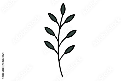 tree branch, leaf, botanical, minimalist, illustration, dark green, single, plant, nature, simple, graphic, design element, vector, line art, foliage, sprig, twig, greenery, organic, pattern, symbol, emblem, logotype, decoration, artwork, white background