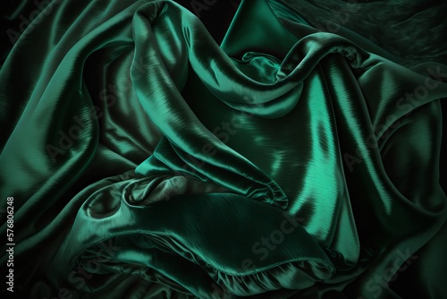 Dark green velvet background. Luxurious shiny material Generative AI