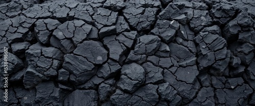 Dark, rough texture of porous black volcanic rock, showing intricate detail, pattern, dark grey