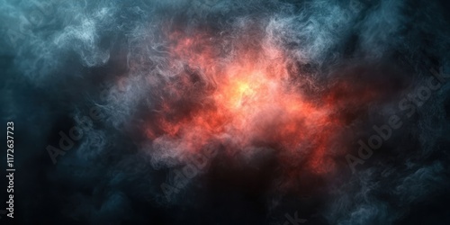 Dark Smoke Clouds with Red Light Background Creating Mysterious Atmosphere in Artistic Digital Illustration for Stock Photography Use