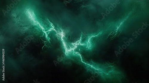 Dark storm clouds with vibrant green lightning