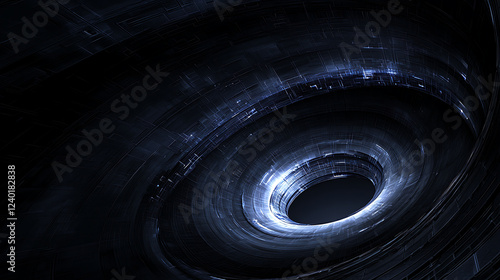 vortex, swirling, dark, abstract, technology, background, futuristic, design, blue, glow, space, energy, cosmos, universe, galaxy, light, pattern, texture, illustration, graphic, digital, art, science, fiction, concept, power, motion, speed, depth, mystery, infinite, circle, spiral, line, curve, black, night, hole, tunnel