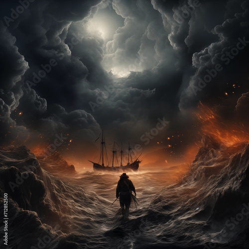 hurricane, thunderstorm, yacht, mast, risk, illustration, teamwork, dramatic, seascape, crew, marin, black, sunset, fantasy, flag, ghost, storm, wave, exploration, fog, background, light, horizon, night, nature, sky, dark, mysterious, ship, travel, wooden, blue, transportation, nautical, boat, transport, frigate, sea, sail, pirate, cruise, vintage, ocean, adventure, water, old, vessel, navigation, sailboat