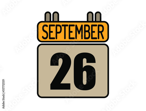 Day 26 September calendar icon. Calendar vector for September days isolated on white background.