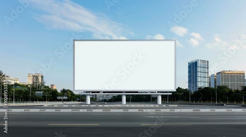 Daytime Billboard Mockup: Realistic billboard in a cityscape, showcasing a large advertisement. Set in bustling areas like intersections and expressways, highly visible during the day. High