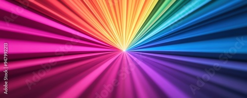 Dazzling light rays fanning out from a central source, rainbow colors, dramatic concert setting, vibrant and energetic