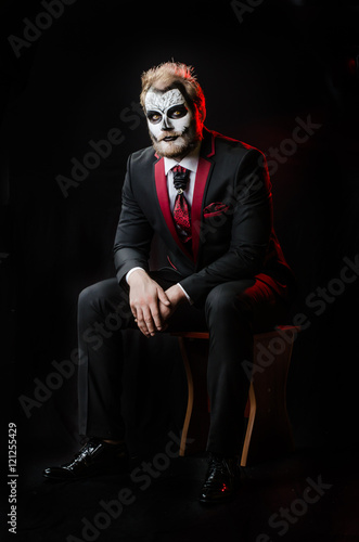 Dead face make up portrait of young man in studio.