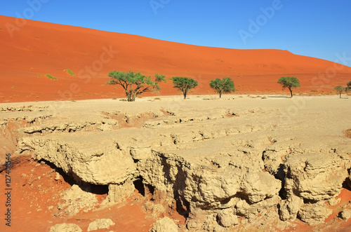 sunlight, tree, natural, park, national, daylight, white, travel, red, day, sand, dune, scenery, orange, africa, arid, acacia, african, pan, namibia, famous, dead, blue, clay, sky, sight, desert, tour tourism, wild, nature, beautiful, sossusvlei, dry, landscape, hot, green
