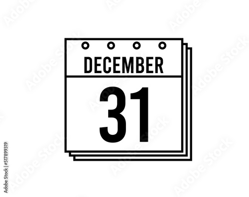 December 31 calendar. December month calendar black and white icon. Simple 3D vector.