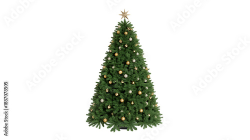 Decorated Christmas tree with gold and white ornaments holiday symbol transparent background
