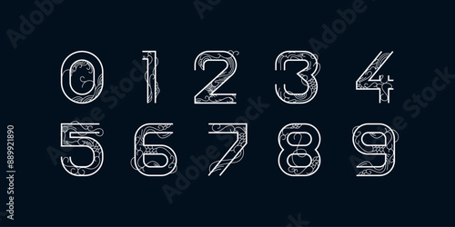DECORATIVE NUMBER 8, SET OF ELEGANT VINTAGE ORNAMENTAL NUMBER, MADE WITH HAND DRAWN VECTOR ILLUSTRATION