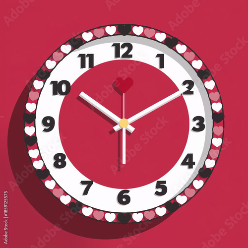 clock, nubes, red, love, february 14, illustration, design, time, romance, decorative, border, circle, pattern, graphic, cartoon, symbol, passion, emotion, human relationships, white face, countdown, meeting, date, anniversary, celebration, cute, simple, abstract, vector, horologe, dial, number, hours, minute, background, isolated, affection, special occasion, timeless