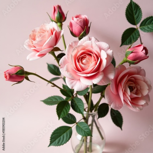 Delicate artificial roses and peonies in a soft pink hue, flower arrangement , floral wall