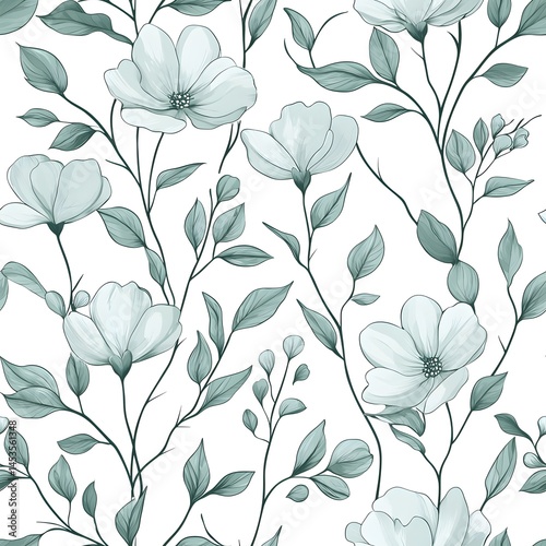background, tile, seamless, pattern, floral, ornament, elegant, repeat, outline, textile, light, teal, flower, leaf, branch, stem, design, background, white, illustration, pastel, delicate, repeating, texture, graphic, drawing, colours, green, blue, soft, decorative, aesthetic, abstract, modern, vintage, pretty, whimsical, artistic, creative, nature, leafy, stylish