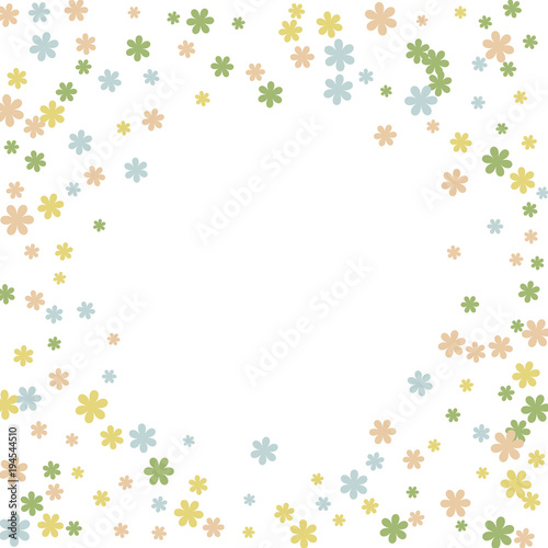 Delicate Floral Pattern with Simple Small Flowers for Greeting Card or Poster. Naive Daisy Flowers in Primitive Style. Vector Background for Spring or Summer Design.