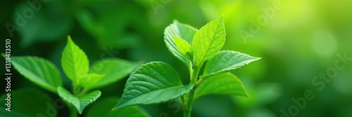 Delicate green leaves unfolding from central stem, foliage, flowers