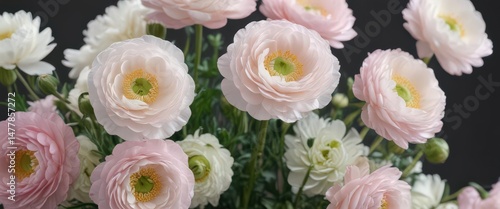 Delicate pink & white ranunculus blossoms, close-up , floral arrangement, wedding, bouquet